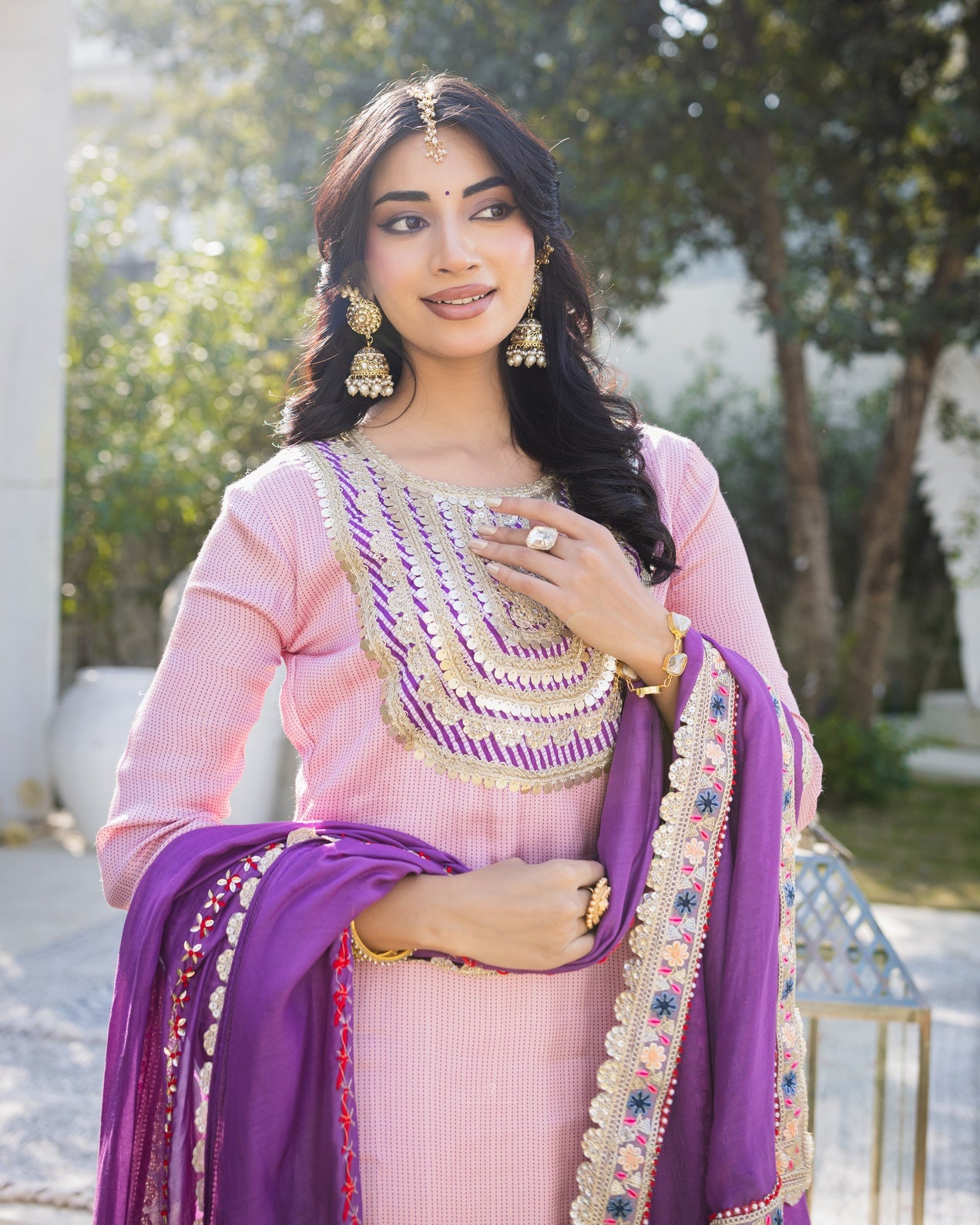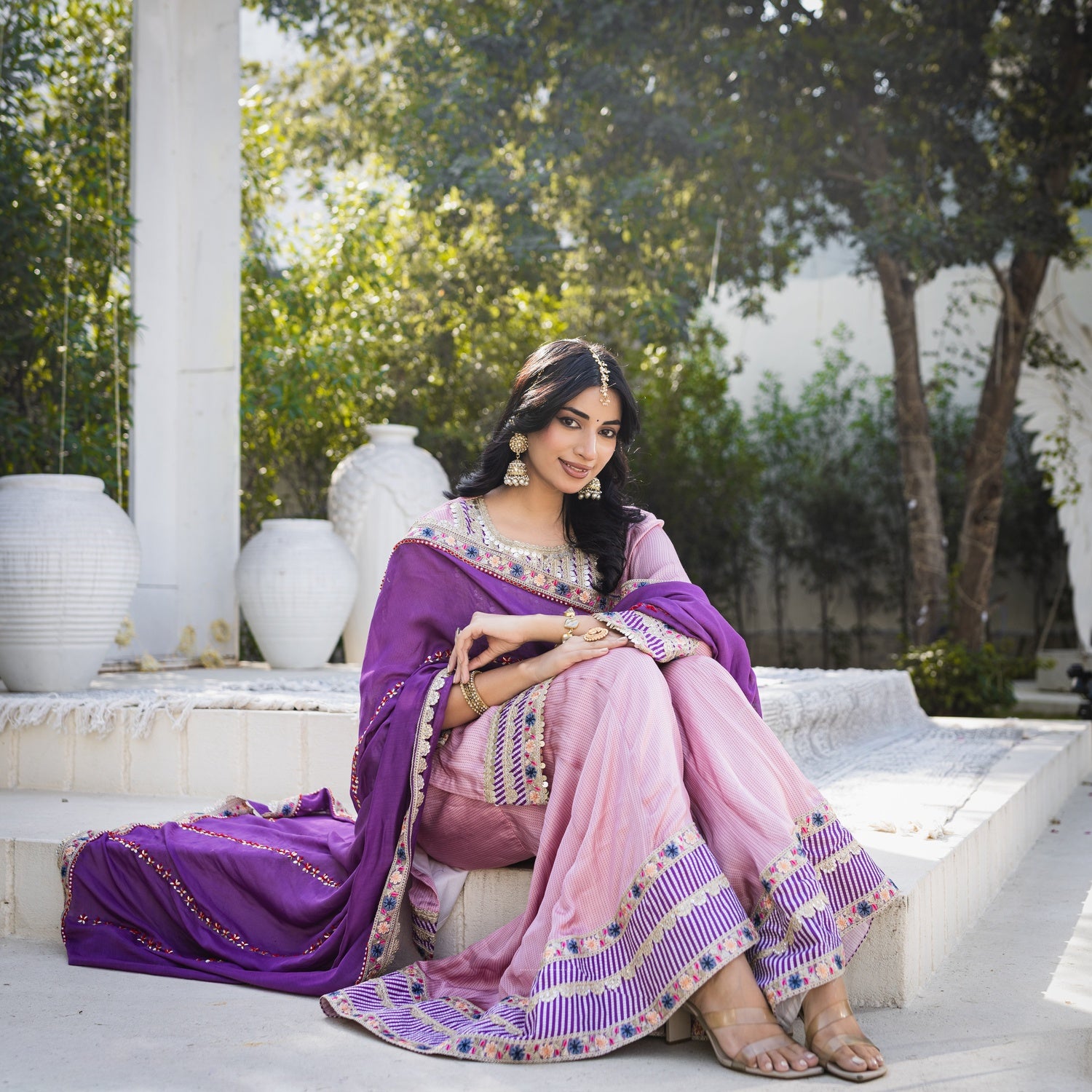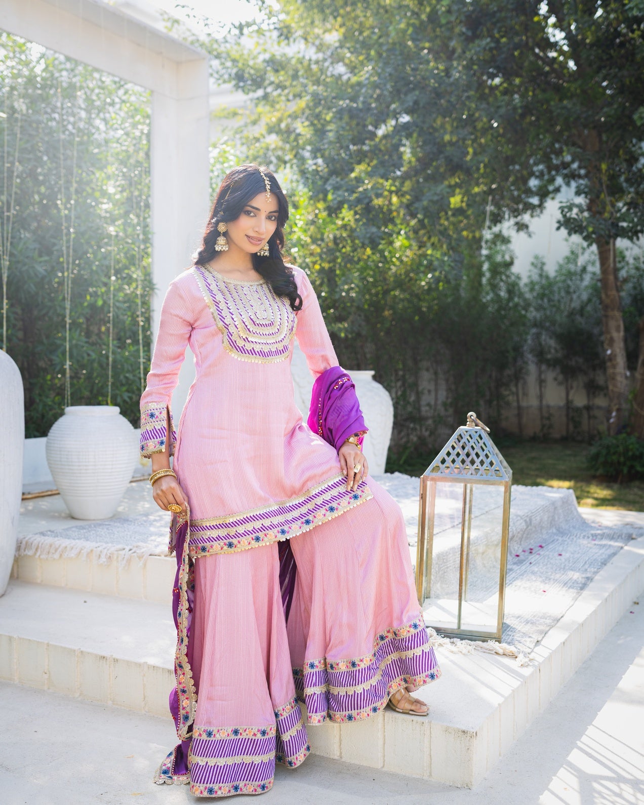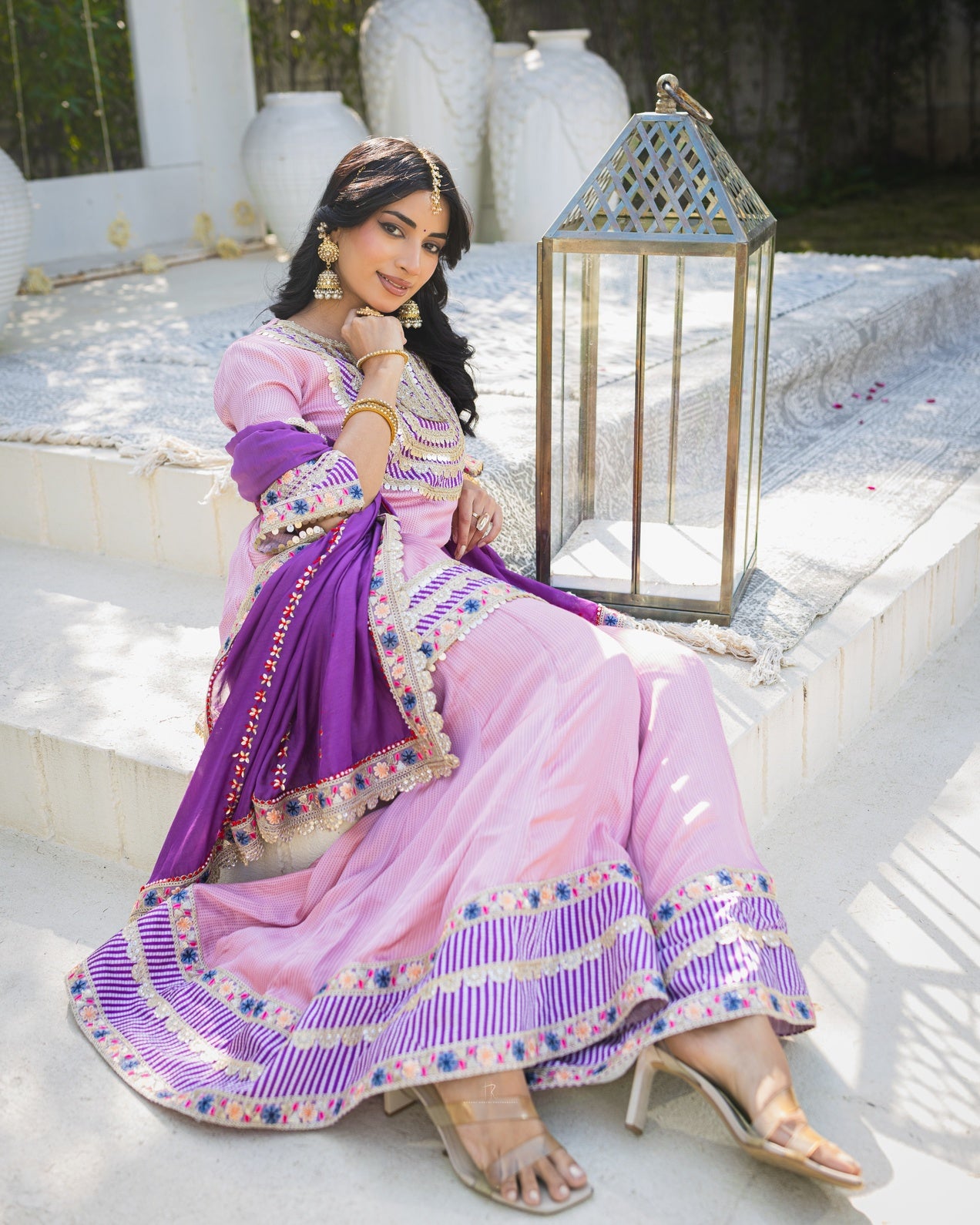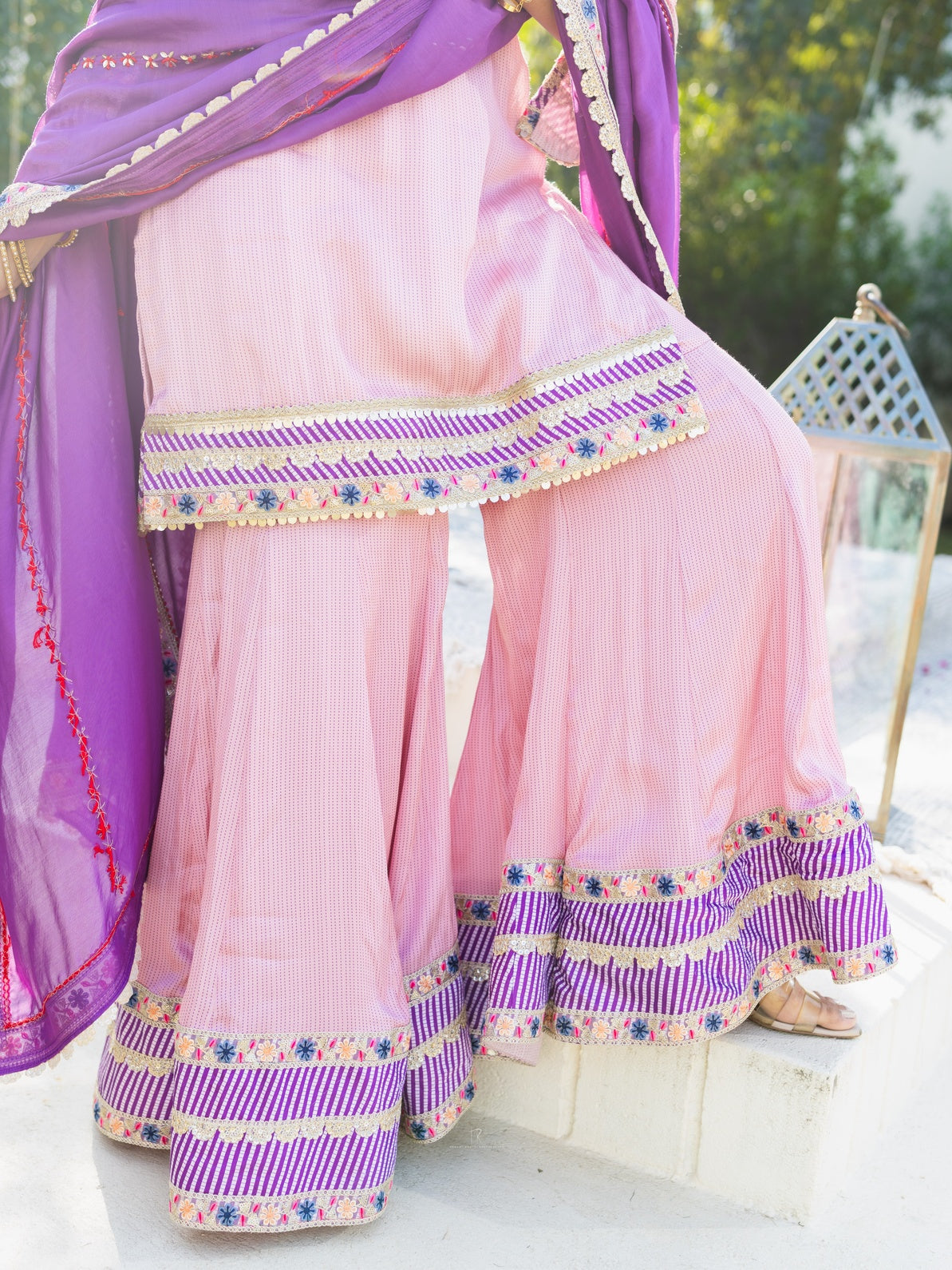 Subhraya Lilac Stripe Sharara Set