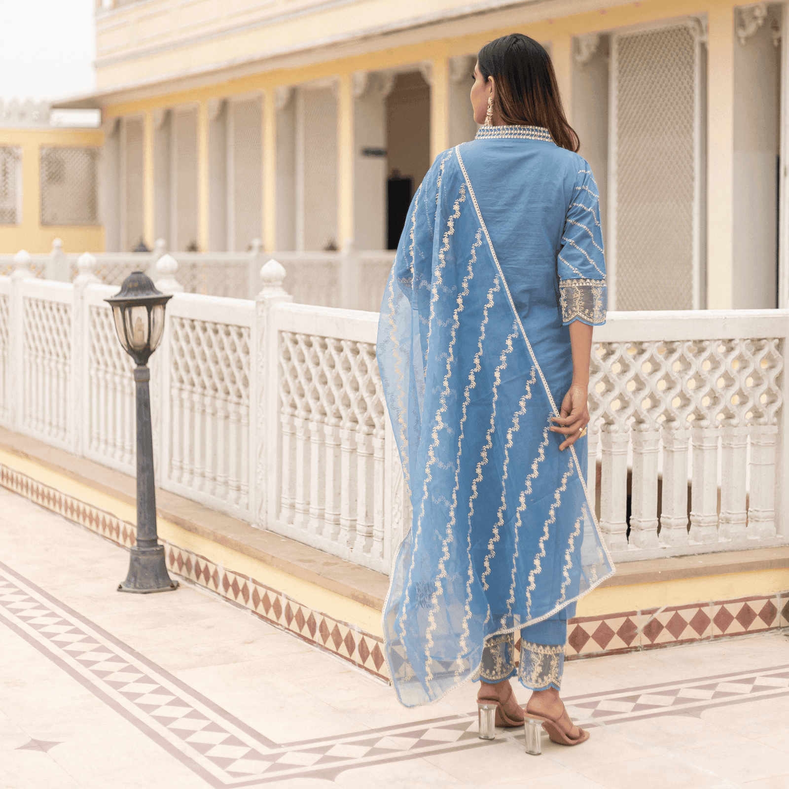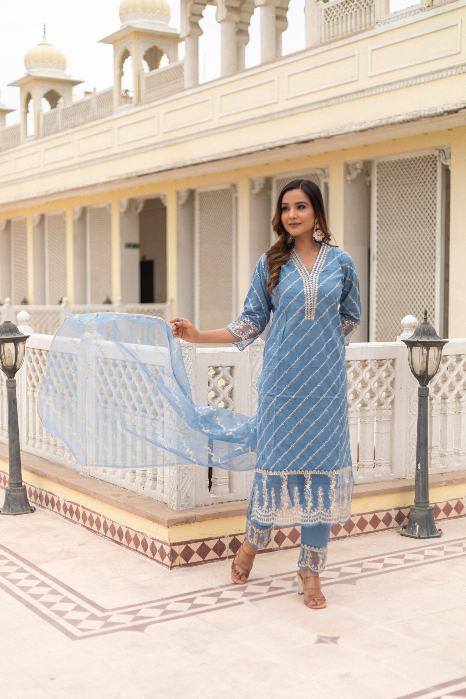 Subhraya Sky Blue lawn cotton periwinkle A line kurta