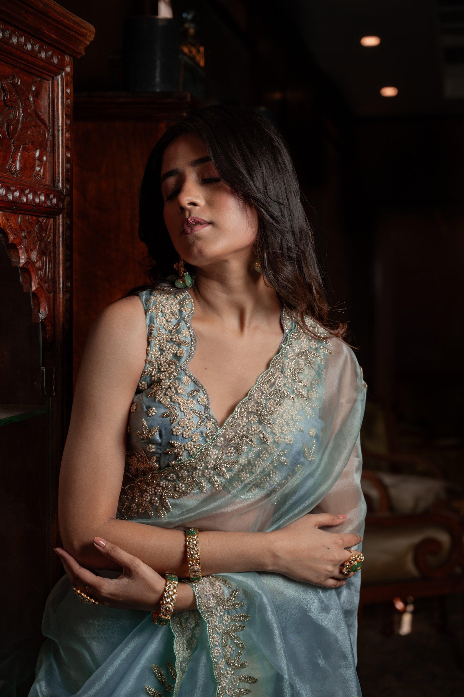 Embrace the ethereal beauty of the Subhraya Pale Sky Tissue Silk Saree, crafted to perfection for weddings, festive events, and special celebrations. Made from premium tissue silk, this saree offers a soft, lustrous sheen that captures attention effortlessly. The pale sky hue adds a delicate, serene charm, making it ideal for both daytime and evening occasions. With its lightweight fabric and elegant design, this saree ensures you look radiant and graceful at every event.
