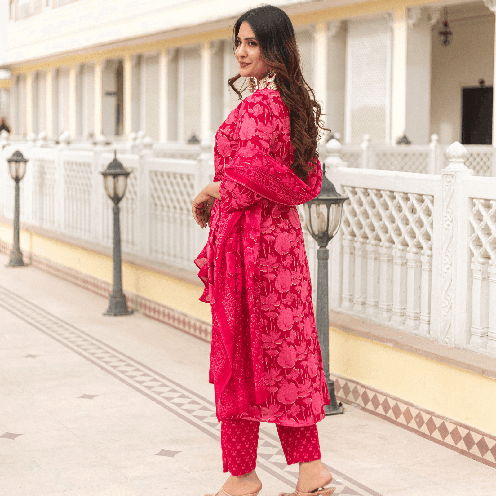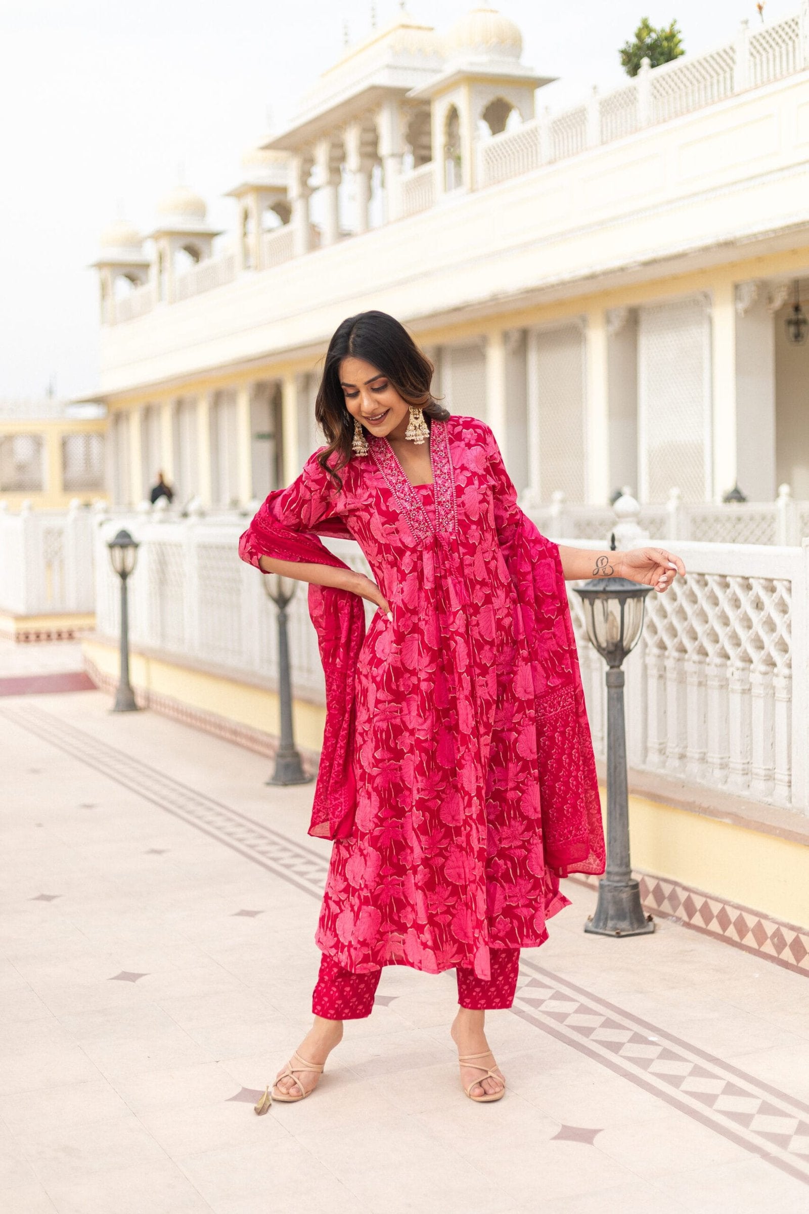 Subhraya Pure Cotton Fuchsia Anarkali Kurta